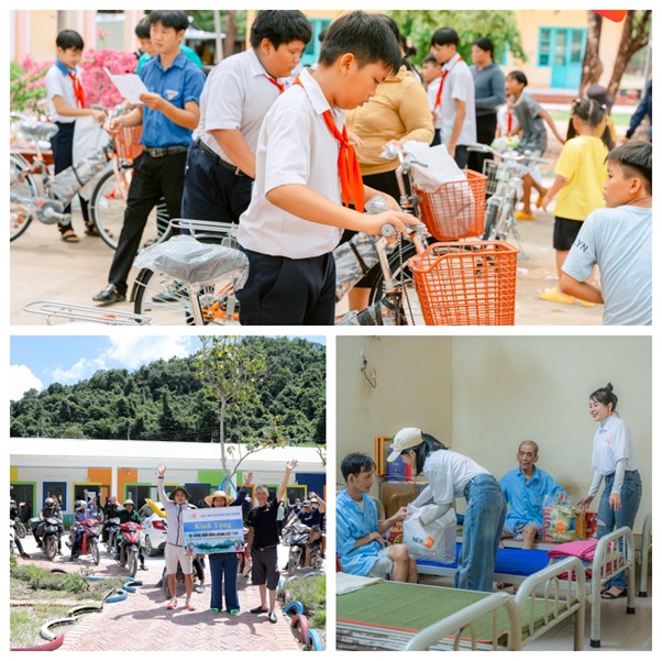 Bên cạnh đó, chúng tôi còn mang đến những món quà thiết thực như tặng xe đạp, balo cho học sinh. Những món quà này đã hỗ trợ về mặt vật chất và mang lại niềm vui, động lực cho các em nhỏ. Hình ảnh những nụ cười rạng rỡ của các em học sinh chính là minh chứng cho tình yêu thương và sự sẻ chia mà chương trình đã mang lại.
