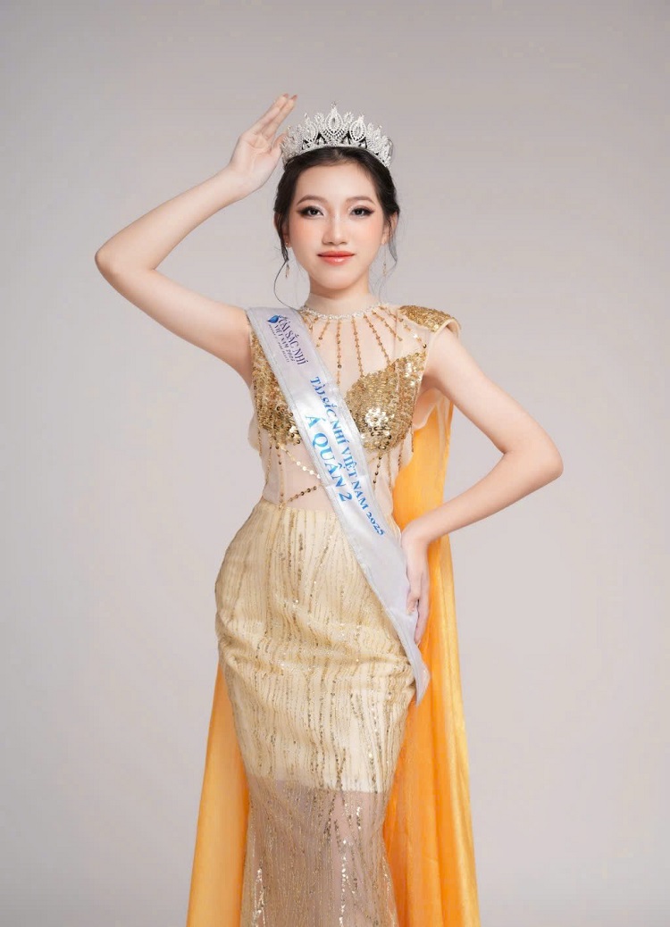 Ở cuộc thi này ,Bé sẽ thể hiện 2 bộ trang phục dạ hội và trang phục dân tộc. Đây là những thiết kế rất cầu kỳ được Nhà thiết kế Khôi Nguyễn chỉnh chu và đặt nhiều tâm huyết.