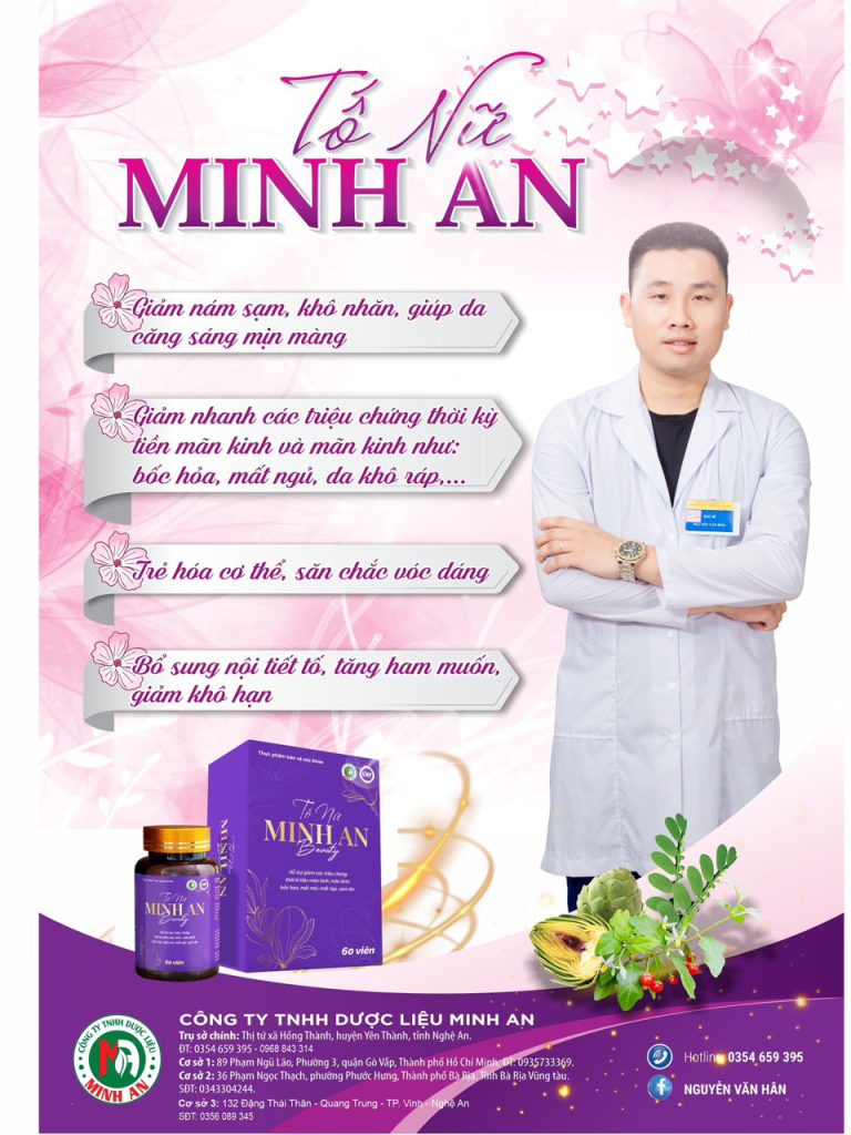 Dưới sự dẫn dắt của Bác sĩ trẻ Nguyễn Văn Hân, anh đã dành nhiều thời gian nghiên cứu, thử nghiệm và cho ra đời sản phẩm viên uống tố nữ Minh An Beauty. Đây là sản phẩm tăng nội tiết tố, trẻ hóa và làm đẹp, cân bằng nội tiết trong cơ thể chị em phụ nữ. Chỉ một thời gian ngắn, sản phẩm trở thành thương hiệu nhận diện chủ lực của Công ty dược liệu Minh An. Các doanh nhân, doanh nghiệp có nhu cầu hợp tác, mở rộng hệ thống phân phối, có thể trực tiếp liên hệ với Bác sĩ Nguyễn Văn Hân.