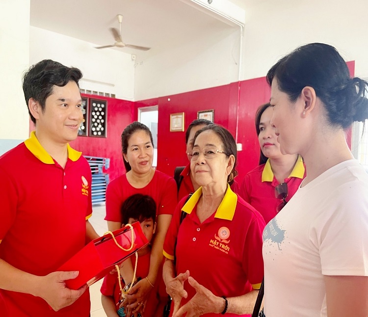 Giám Đốc Nguyễn Hồng Minh – Công Ty TNHH Trà Tâm An chia sẻ công dụng sản phẩm cùng Thầy Bùi Quốc Tuấn – chủ tịch Công Ty Số Học Mặt Trời trong buổi đến thăm cơ sở bảo trợ trẻ em Thiên Thần Quận 9.