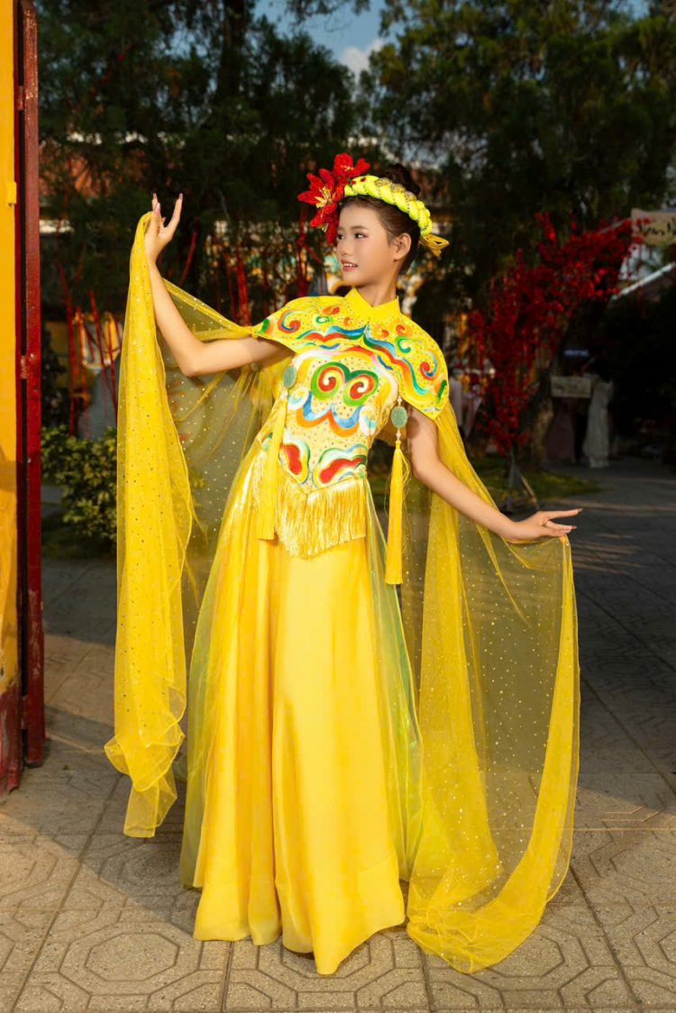 Bé Hoàng Kim Ngân là gương mặt mới trong team áo dài Khôi Nguyễn, cô bé hiện đang sống và học tập tại cần Thơ.