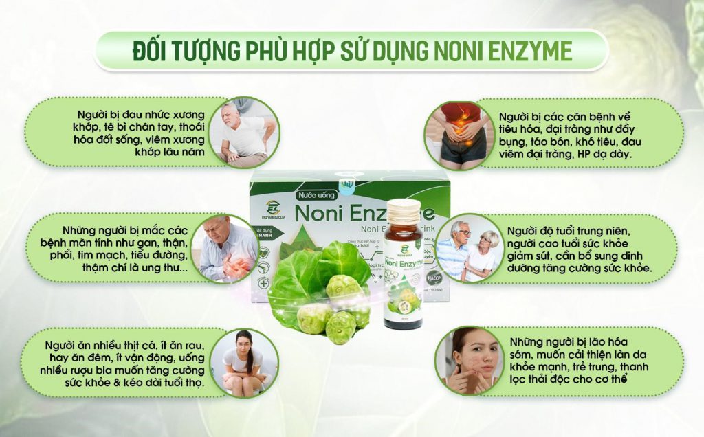 - Trẻ em từ 2 đến 6 tuổi và người già có dạ dày nhạy cảm nên sử dụng Noni Enzyme sau khi ăn để tránh kích thích dạ dày.