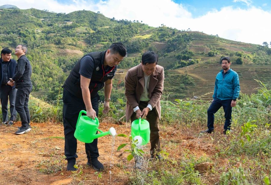 Đại diện chính quyền La Pán Tẩn cùng MG Việt Nam trồng những bầu cây đầu tiên