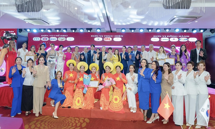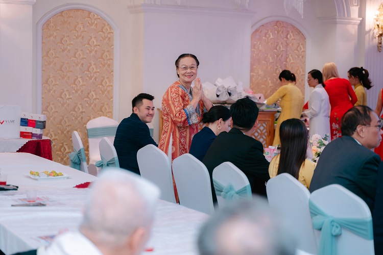 Chuyên gia ẩm thực Nguyễn Hồ Tiếu Anh nhận Thư Cảm Ơn do Công ty Bảo Ngọc Sài Gòn trao tặng. (Áo dài hồng, thứ năm bên trái qua).
