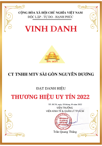 Vừa qua, ngày 28/10, Công ty TNHH Sài Gòn Nguyên Dương đã vinh dự nhận được giải thưởng “Thương Hiệu Uy Tín 2022” do Viện Kinh Tế Và Quản Lý TP.HCM kết hợp cùng Công ty Bảo Ngọc Sài Gòn tổ chức. Đó chính là những thành quả xứng đáng sau bao nỗ lực của tập thể công ty trong suốt thời gian vừa qua.