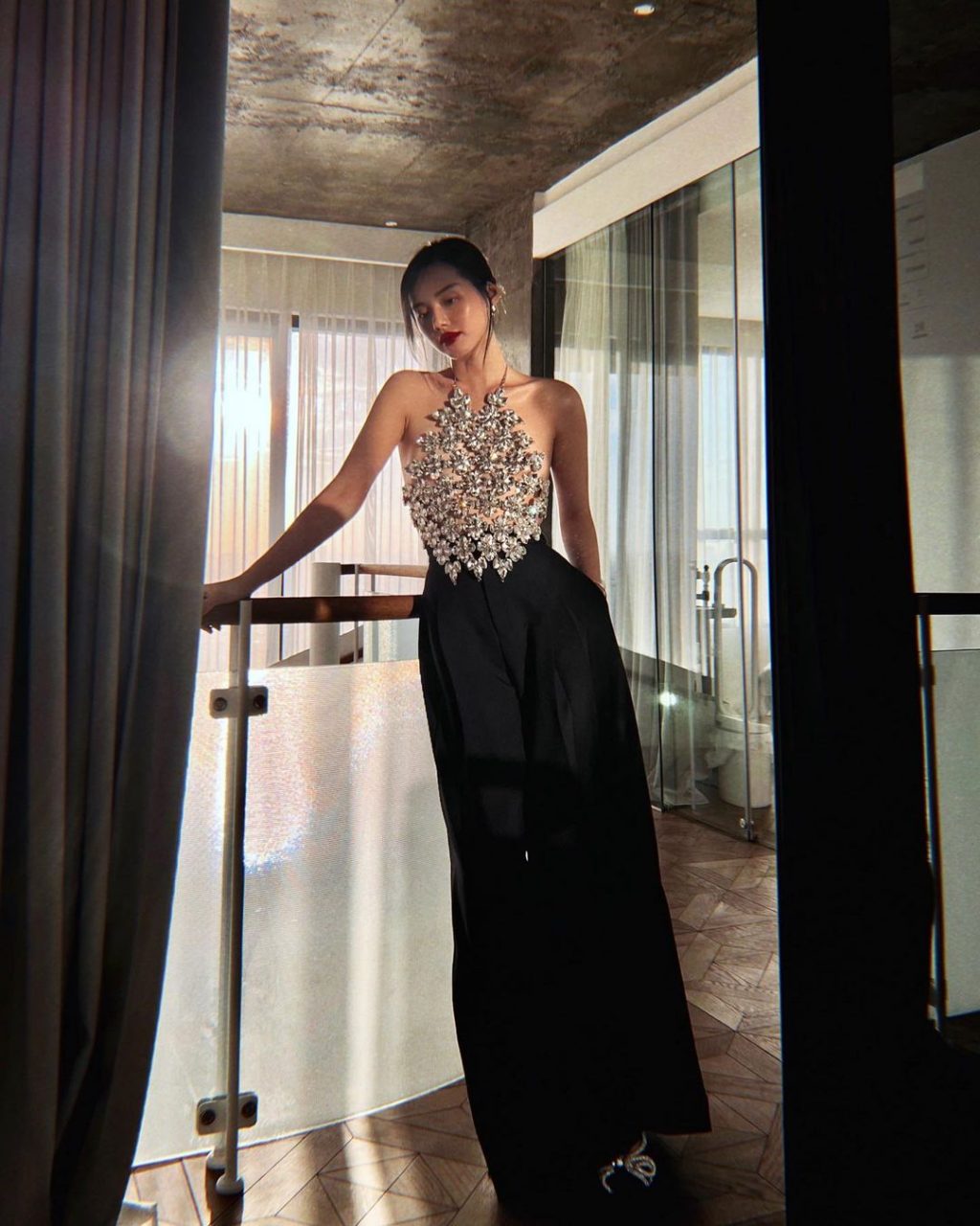 Giờ G đã điểm, ngại gì mà không “thắp sáng” bữa tiệc từ ánh hào quang tỏa ra từ trang phục ánh bạc? Để chiếc áo cổ yếm tỏa sáng tối đa và chính bạn cũng không rơi vào một tạo hình “làm màu” quá đà, chỉ một chiếc quần ống rộng hay chân váy màu đen đã đủ để “thăng hạng” phong cách. “Phụ kiện” hoàn hảo nhất lúc này là một layout makeup thật sắc sảo và quyến rũ.