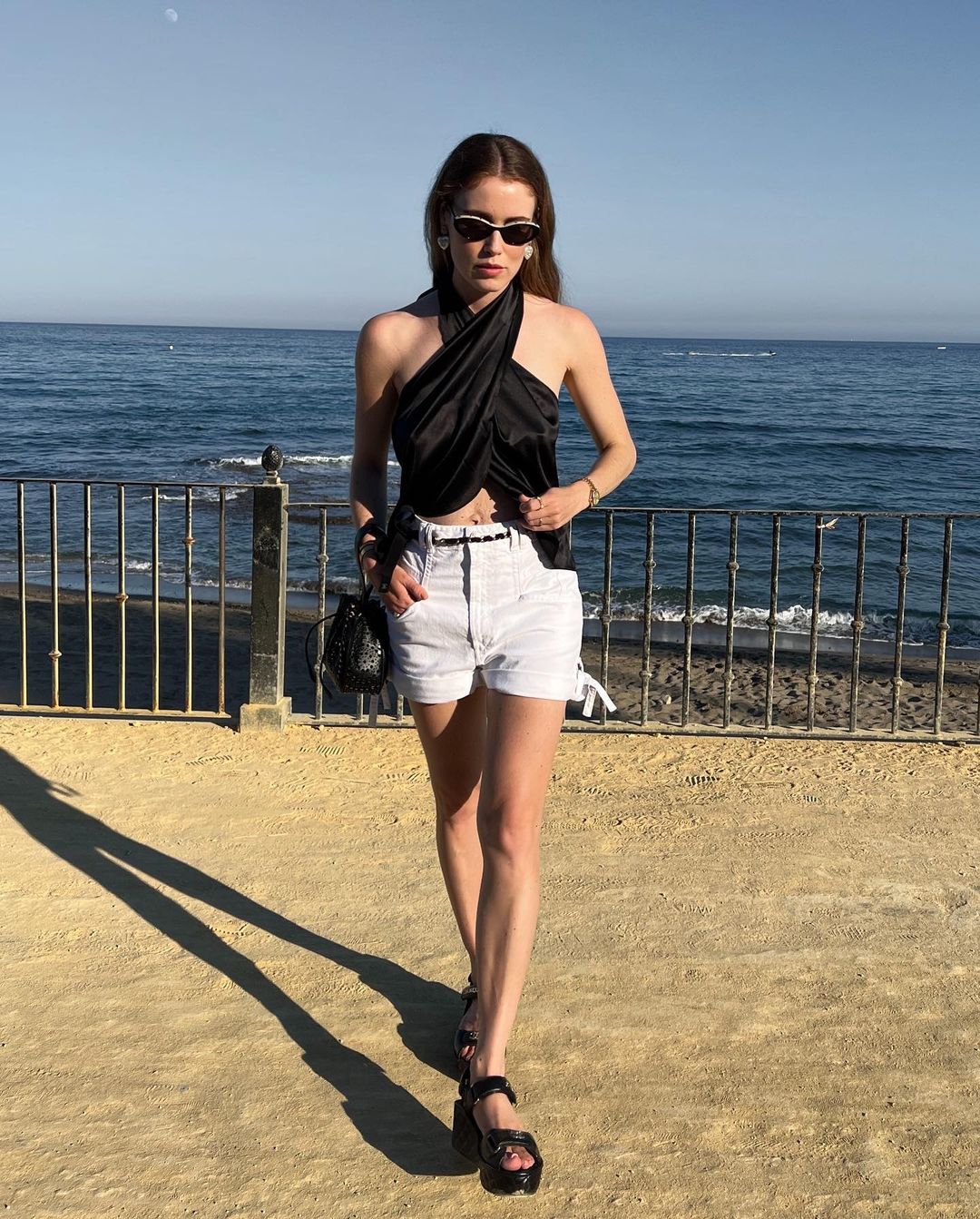 Kết hợp áo cổ yếm và quần shorts giản đơn nhưng luôn tràn đầy vẻ rạng rỡ. Bạn có thể tham khảo danh sách những thiết kế quần ngắn hot nhất mùa này để vừa làm mới phong cách thời trang vừa yêu chiều vóc dáng. Để có một bức ảnh “sống ảo” độc đáo hơn, đừng quên tạo đểm nhất cho set đồ với các phụ kiện như kính râm, thắt lưng và đặc biệt là giày dép. Sneakers sẽ “nạp năng lượng” cho cuộc dạo chơi của bạn nhưng thử một chút “twist” với cowboy boots hay giày platform cũng là một ý tưởng đầy gợi cảm.