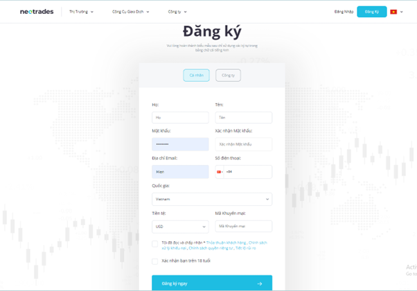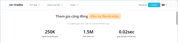 Để thực hiện giao dịch trên sàn, vui lòng truy cập trang web Neotrades. Đăng ký giao dịch tại đây theo 4 bước sau đây: