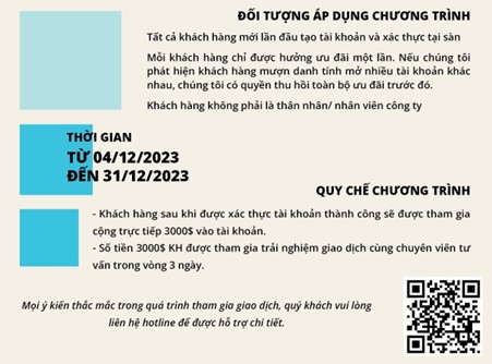 KHÁCH HÀNG ĐƯỢC CỘNG 3000$ BONUS VÀ ĐƯỢC THAM GIA TRẢI NGHIỆM GIAO DỊCH TRỰC TIẾP TRÊN TÀI KHOẢN THẬT