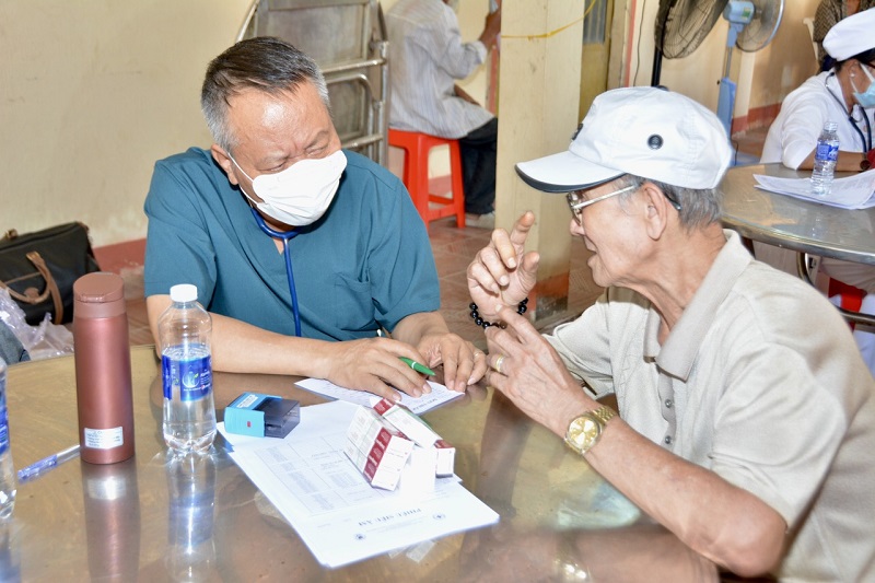 Song song với vấn đề sức khỏe, đoàn đã thăm hỏi và động viên, quan tâm đặc biệt đến các cựu chiến binh, người có công cách mạng, người dân nghèo còn nhiều khó khăn của tỉnh. Đoàn đã “Tặng Tủ Thuốc” và phát quà cho người cao tuổi, người có công và các hộ khó khăn trên địa bàn. Với tổng kinh phí hỗ trợ cho đợt khám bệnh, chữa bệnh nhân đạo: 250.000.000vnđ -300.000.000vnđ