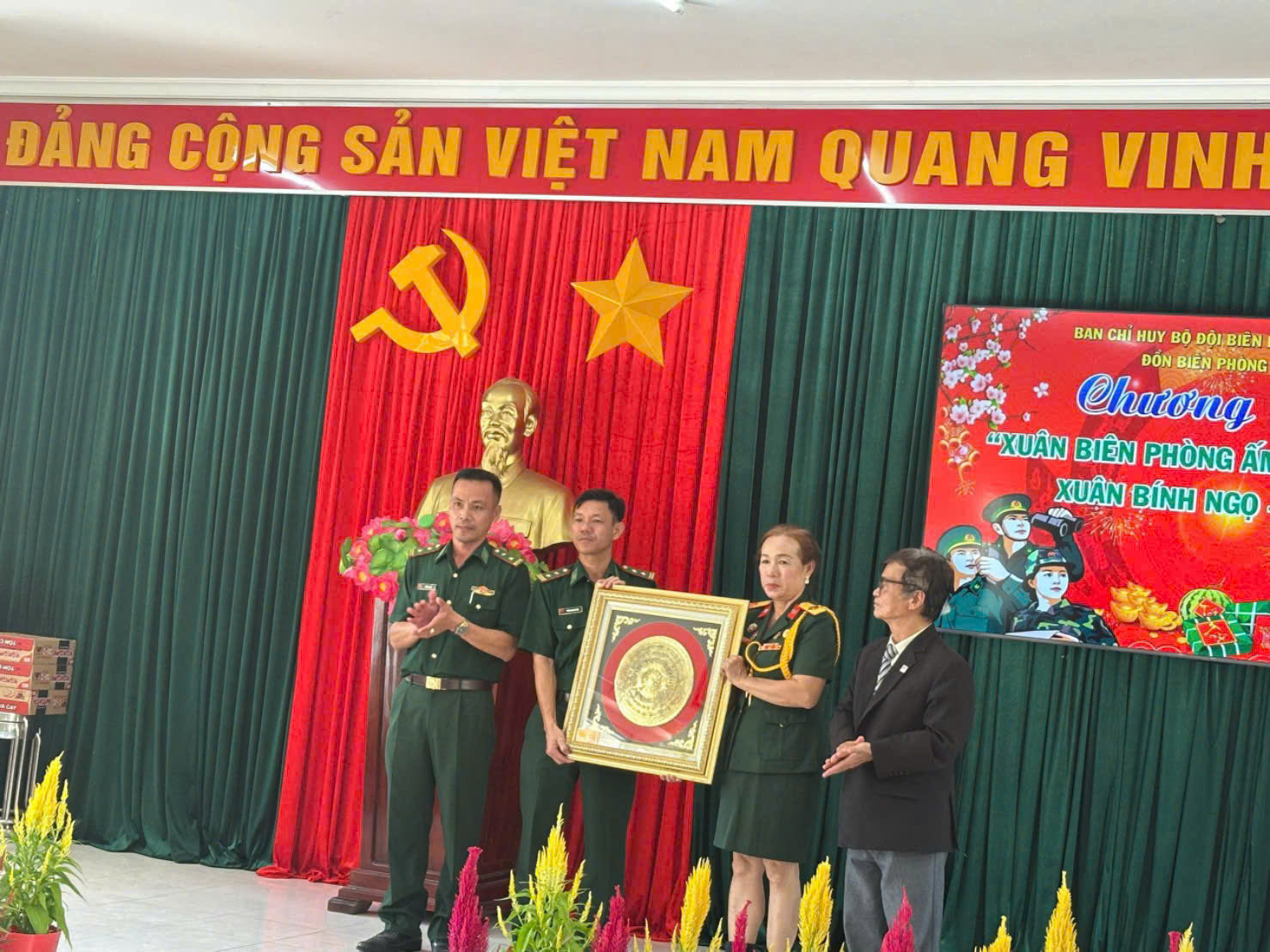 Tại đây, Thiên Hương cùng đoàn công tác đã trao tặng những phần quà Tết thiết thực, gửi gắm tình cảm và sự tri ân sâu sắc đến lực lượng Bộ đội Biên phòng – những người thầm lặng canh giữ từng tấc đất thiêng liêng của Tổ quốc.
