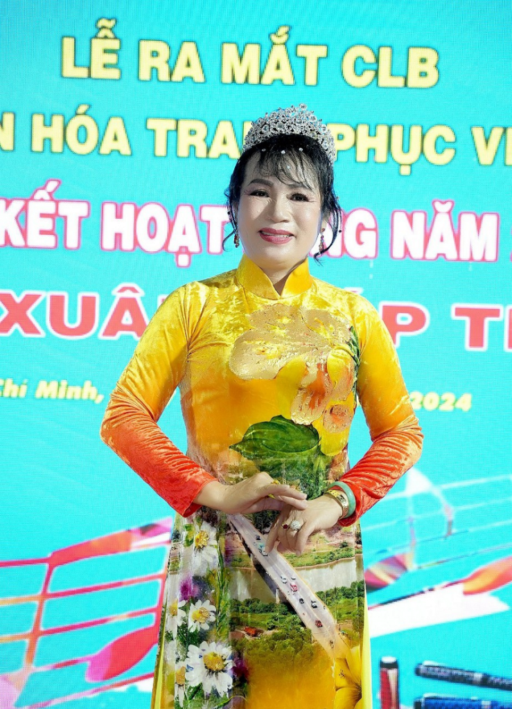 Hiện tại chị đang là chủ tịch Hội doanh nhân văn nghệ sĩ thành phố Hồ Chí Minh; Chủ nhiệm CLB Văn Hóa Trang phục Việt. Nơi đây sẽ là sân chơi của tất cả các doanh nhân, nghệ sĩ và những người yêu văn hóa nghệ thuật, nhằm mang lại niềm vui, hạnh phúc cũng như giao lưu, kết nối tạo ra nhiều hợp tác trong kinh doanh