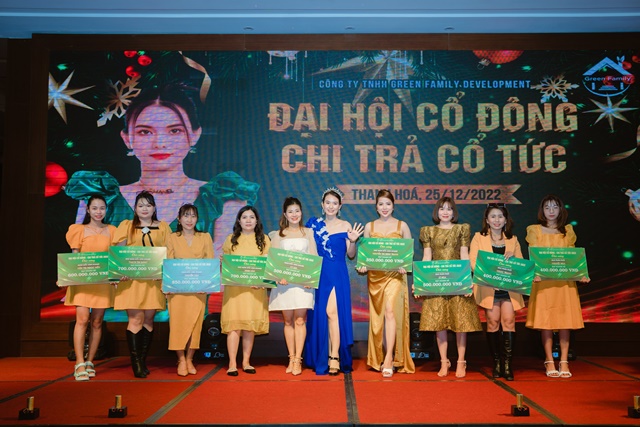 Cuối năm là dịp cho các doanh nghiệp nói chung, công ty TNHH Green Family Development nói riêng tổ chức chương trình Year End Party nhằm tổng kết, nhìn nhận lại 1 năm đã qua & đón chào một năm mới nhiều tín hiệu tích cực. Do đó, ngày 25/12, công ty đã tổ chức chương trình “Đại hội cổ đông – Chi trả cổ tức”, nhằm tri ân các cá nhân, đại lý đã có những kết quả xuất sắc thời gian qua với những phần quà giá trị cùng số tiền cổ tức lên tới vài tỷ đồng.