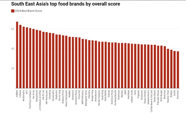 Nguồn: Báo cáo của Campaign Asia và Milieu Insight – Bảng xếp hạng vị trí thương hiệu thực phẩm hàng đầu tại Đông Nam Á năm 2024