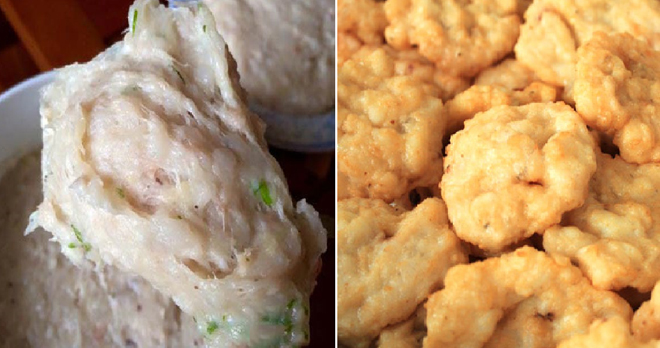 - Cho mực vừa nặn vào chiên vàng đều hai mặt