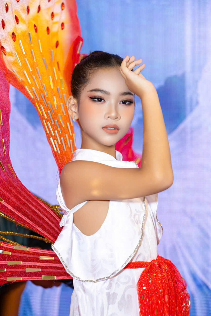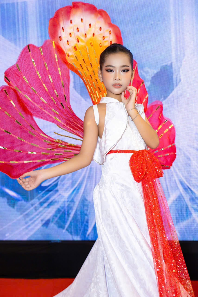 Mẫu nhí Đặng Kiều Bảo Ngân, năm nay mới 10 tuổi, vừa qua đã có màn trình diễn vô cùng ấn tượng, thu hút mọi ánh nhìn khi giữ vai trò đại sứ cho BST “Hoa Phượng”, đồng thời cũng là Vedelte trong bộ sưu tập của NTK Khôi Nguyễn. Dường như bộ sưu tập sinh ra là để dành cho bé tỏa sáng.