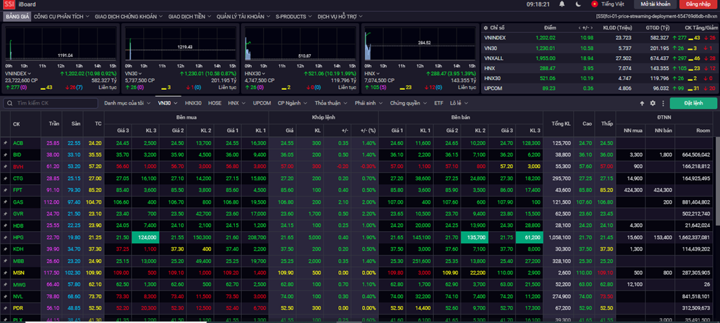 Thời điểm 9 giờ 48 phút, chỉ số VN-Index vẫn giao dịch sát mốc 1.200 điểm.