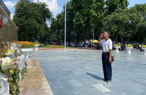 Anh Roãn Đình Tiên, 56 tuổi, sỹ quan quân đội nhà ở Khâm Thiên, quận Đống Đa cũng đi bộ ra tượng đài để tri ân những người đồng đội hy sinh trong thời bình. “Sau khi biết tin, tôi liền đến thăm viếng những người đồng đội. Việc làm của các anh chúng tôi không bao giờ quên”, anh Tiên nói. Trước lúc về, anh Tiên giơ tay, thực hiện động tác chào như một một lời tiễn biệt cuối cùng