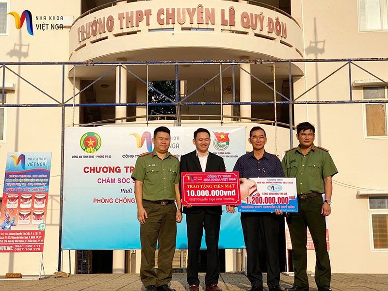 Nằm trong khuôn khổ chiến dịch “Nha khoa học đường” Công ty TNHH Nha khoa Việt Nga đã tài trợ 10.000.000đ tiền mặt vào Qũy khuyến học của trường và 1.200.000.000đ là voucher khám chữa răng cho các học sinh tại trường, do ông Lê Văn Hiếu là CEO của công ty trực tiếp trao tặng.