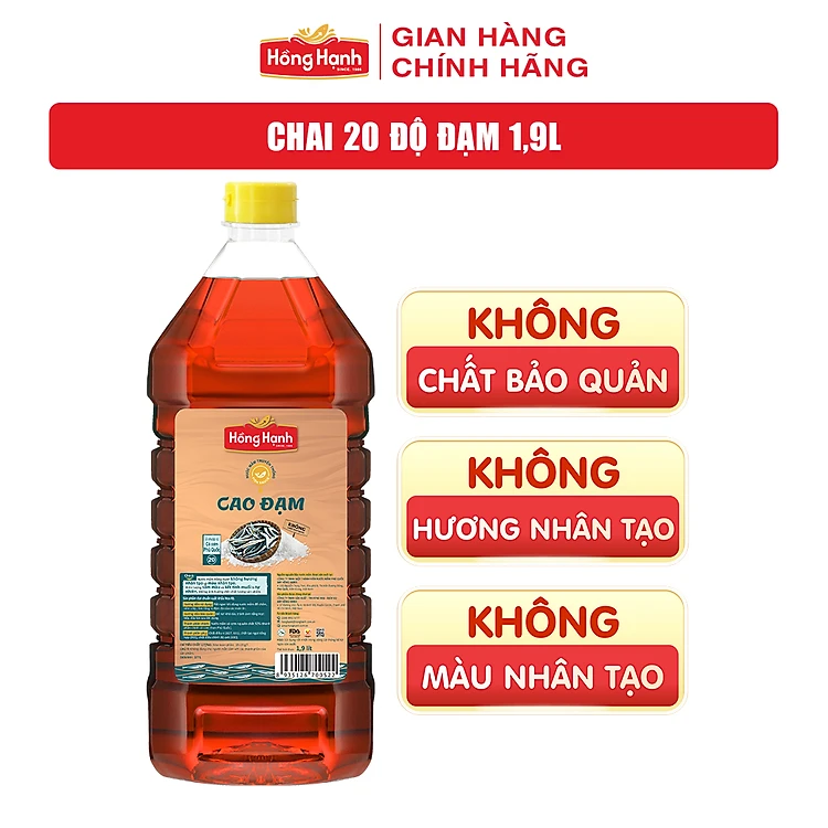 Sản phẩm nước mắm cao đạm Hồng Hạnh chứa hàm lượng axit amin tự nhiên cao, kích thích vị giác, ngoài ra còn chứa thành phần chính như: Nước mắm cá cơm Phú Quốc nguyên chất,…