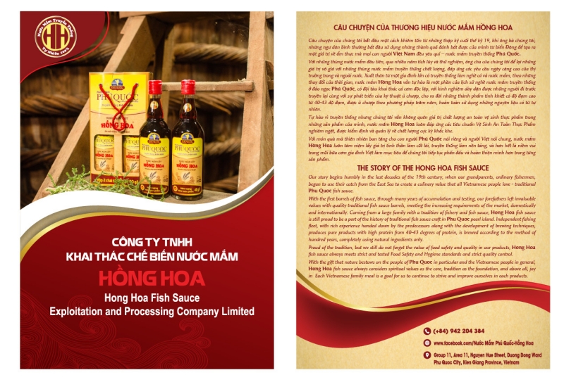 Tự hào vì truyền thống nhưng nước mắm Hồng Hoa vẫn không quên giá trị chất lượng an toàn vệ sinh thực phẩm trong những sản phẩm của mình, nước mắm Hồng Hoa luôn đáp ứng các tiêu chuẩn Vệ Sinh An Toàn Thực Phẩm nghiêm ngặt, được kiểm định và quản lý về chất lượng cực kỳ khắc khe. Câu chuyện của Nước mắm Hồng Hoa bắt đầu một cách khiêm tốn từ những thập kỷ cuối thế kỷ 19, khi ông bà của họ, những ngư dân bình thường bắt đầu sử dụng những thành quả đánh bắt được của mình từ biển Đông để tạo ra một giá trị về ẩm thực mà mọi con người Việt Nam đều yêu quý – nước mắm truyền thống Phú Quốc.