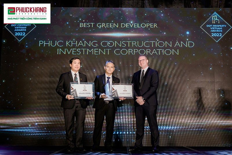 Trải qua quy trình đánh giá chặt chẽ, minh bạch của hội đồng kiểm định, Phuc Khang Corporation đã được tôn vinh ở 2 hạng mục gồm: (1) Best Green Developer Vietnam 2022 (Nhà phát triển công trình xanh tốt nhất Việt Nam 2022) và (2) Special Recognition Awards for CSR Vietnam 2022 (Giải thưởng công nhận đặc biệt dành cho doanh nghiệp bất động sản thực hiện trách nhiệm xã hội Việt Nam 2022). “Cú đúp” thành tích này tiếp tục khẳng định uy tín của một thương hiệu xanh sáng lấp lánh tình yêu thương và tinh thần nhân văn hướng đến sự phát triển bền vững.