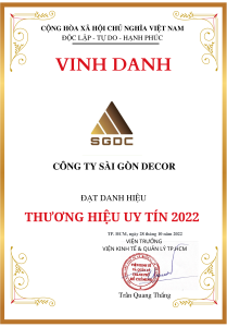 Đáp lại những nỗ lực ấy, vào ngày 28/10 vừa qua, Sài Gòn Decor đã vinh dự nhận giải thưởng “THƯƠNG HIỆU UY TÍN 2022” do Công ty Bảo Ngọc Sài Gòn kết hợp với Viện kinh tế và quản lý TP.HCM tổ chức. Đồng thời Sài Gòn Decor vừa kí kết hợp tác thành công để Phân phối hàng hoá tại Trung tâm Trưng bày và phân phối Hàng Hoá Bảo Ngọc Sài Gòn, cũng như những dự án hợp tác bền vững trong lĩnh vực Bất động sản, xây dựng, nội thất. Đó là những quả ngọt gặt hái được sau những cố gắng không ngừng nghỉ của cả một tập thể.