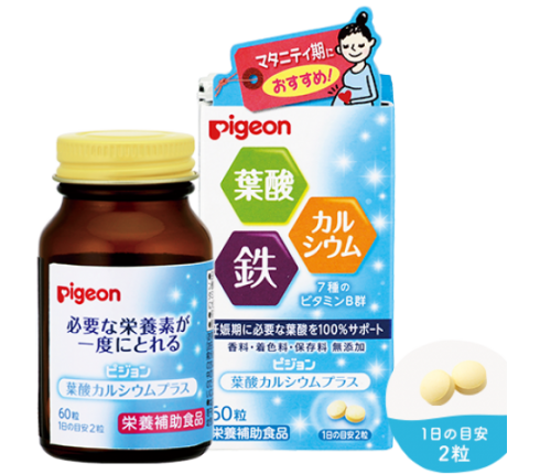- Viên uống Pigeon Nhật Bản giúp bổ sung hàm lượng dưỡng chất thiết yếu mà mẹ bầu cần mỗi ngày, gồm: Acid folic 400mcg, Sắt 10mg, Canxi 160mg + 12 vitamin cần thiết khác.