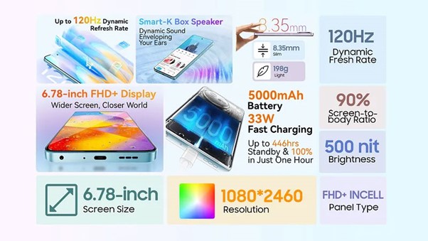 Nhu cầu hiện đại đã tạo động lực cho các hãng công nghệ ngày càng chú trọng vào trải nghiệm nghe nhìn của người dùng. Hiểu được tầm quan trọng này nên OSCAL TIGER 12 ra đời với thiết kế màn hình 6,78 inch 2,4K FHD+. Thông số này mang đến hình ảnh rộng hơn và sắc nét hơn. Đồng thời, siêu phẩm cũng được trang bị tần số quét 120Hz làm cho mọi tác vụ của người dùng trở nên nhanh chóng hơn.