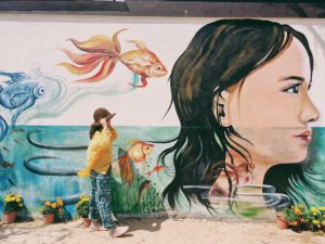 Một trong những góc check-in tại ngôi làng bích họa Tam Thanh