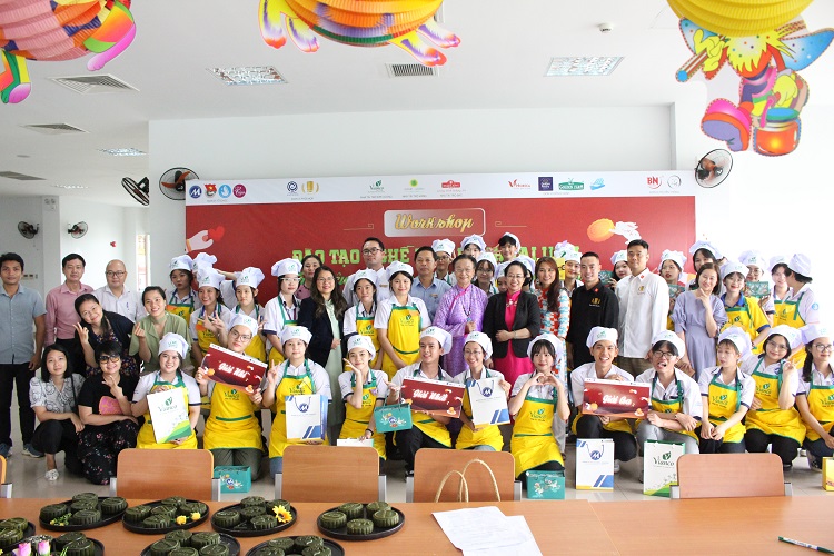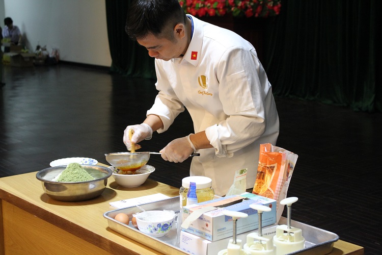Sau khi chứng kiến Bếp trưởng Lý Kim Long biểu diễn trực tiếp làm bánh Trung Thu, các giảng viên và sinh viên của Khoa Du lịch UFM đã trực tiếp tham gia chế biến thủ công và nướng gần 800 bánh Trung thu.