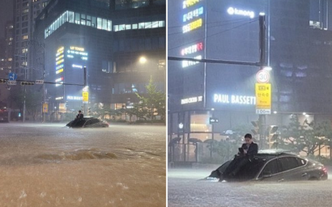 Hình ảnh ngập lụt ở quận Gangnam được làm ấn tượng thêm bởi hình ảnh một người đàn ông, ngồi trên nắp capo chiếc xe ngập nước và chụp ảnh. Với nhiều người Việt Nam,  hình ảnh này gợi nhớ lại một bức ảnh được chụp vài tháng trước, khi một người đàn ông ngồi chụp ảnh trên nóc chiếc xe bị ngập tại khu vực Tòa nhà Keangnam, Hà Nội.