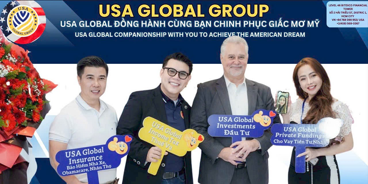 USA GLOBAL GROUP, là công ty Tư Vấn Tài Chính và Đầu tư định cư Hoa Kỳ có trụ sở đặt Tại Hoa Kỳ và 2 chi nhánh đặt tại Việt Nam , sắp tới sẽ phát triển sang thị trường Philipines, Lào và Malaysia . Với tư duy toàn cầu hoá và tầm nhìn dài hạn , CEO Từ Phương Vân mong muốn trao cơ hội định cư và đầu tư an toàn tại Mỹ . Cơ hội trở thành công dân Hoa Kỳ không những là dành cho hầu hết người Việt Nam và còn là cơ hội cho tất cả những ai có mong muốn nâng cấp chất lượng cuộc sống bằng con đường trở thành công dân Toàn Cầu, được hưởng những lợi ích quyền lợi về giáo dục y tế ,tiện ích về khoa học công nghệ , trợ cấp từ chính phủ và những tổ chức hỗ trợ tài chính quốc tế.