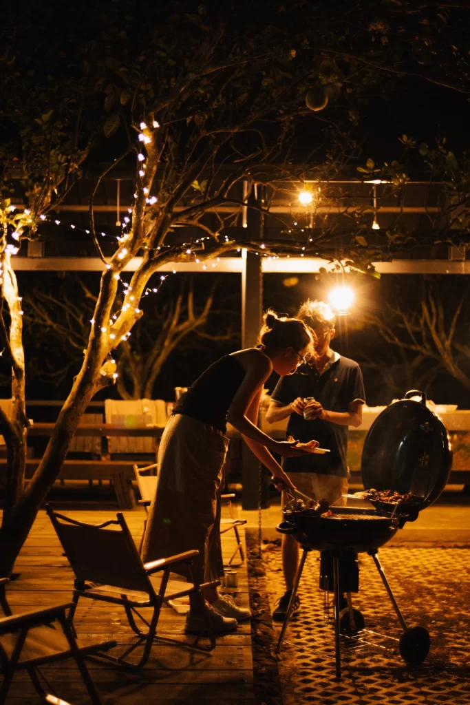 Tiệc nướng BBQ là một trong những hoạt động đặc trưng của mô hình camping. Các khu cắm trại hiện nay đều cung cấp dịch vụ tiệc nướng, chuẩn bị tất tần tật mọi thứ để chiều tối mọi người có thể cùng nhau quây quần, vừa tự tay chuẩn bị bữa ăn vừa có cơ hội tương tác gần gũi.